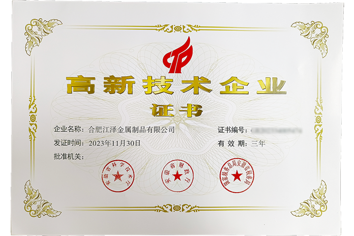 近日,經(jīng)過(guò)層層評(píng)審,江澤金屬憑借出色的專業(yè)能力與實(shí)力,成功獲批高新技術(shù)企業(yè)認(rèn)定,標(biāo)志著公司整體技術(shù)水平和自主創(chuàng)新能力邁上了一個(gè)新臺(tái)階,對(duì)公司提升企業(yè)品牌形象、促進(jìn)企業(yè)轉(zhuǎn)型升級(jí)、提高企業(yè)市場(chǎng)價(jià)值和資本價(jià)值、吸引核心人才等方面有著重要意義。
